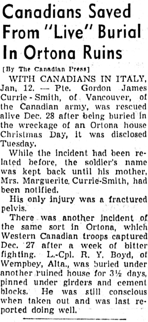 Photographs associated with the above incident concerning L.-Cpl. R. Y. Boyd appeared in the January 14 issue of The Tribune, and they appear immediately below:
